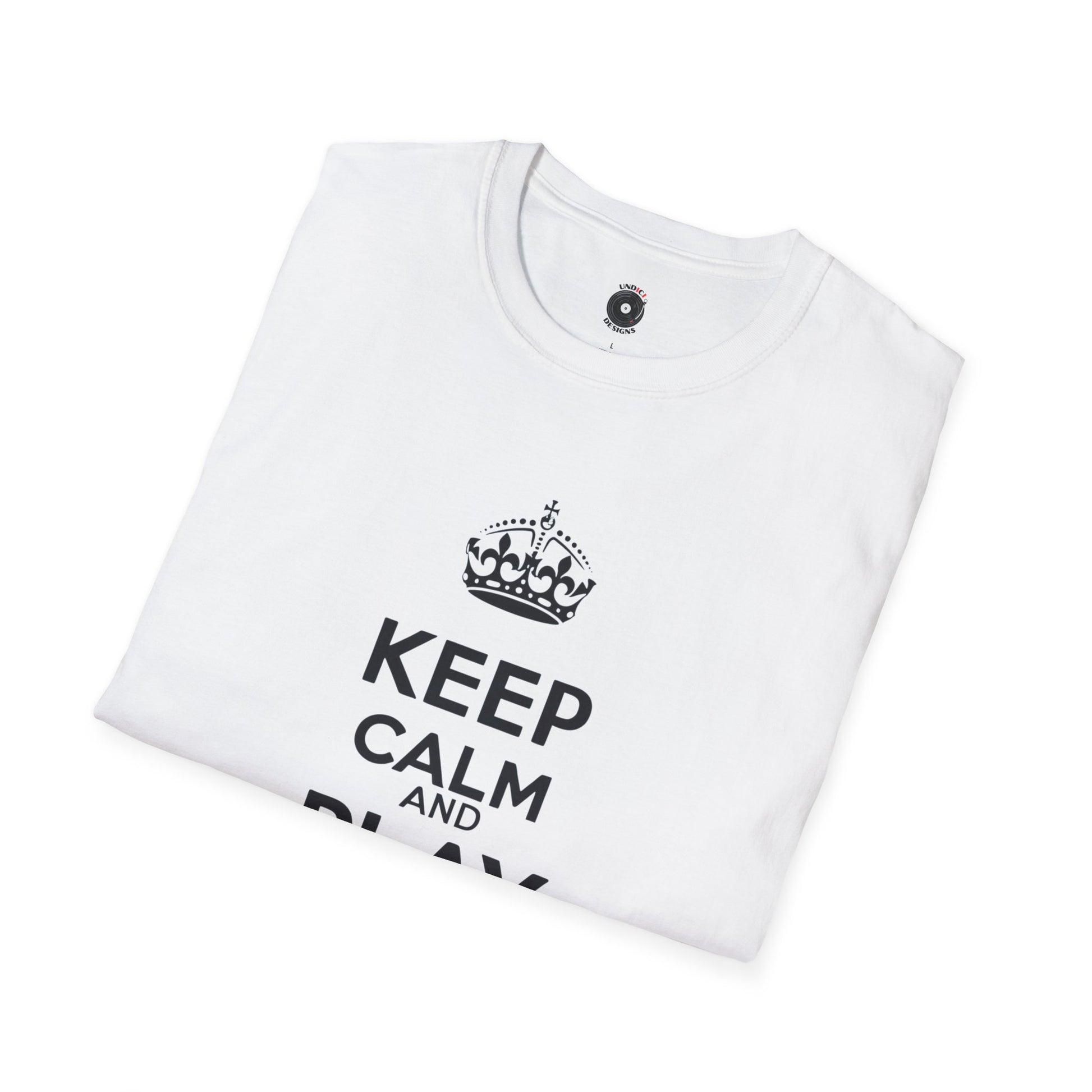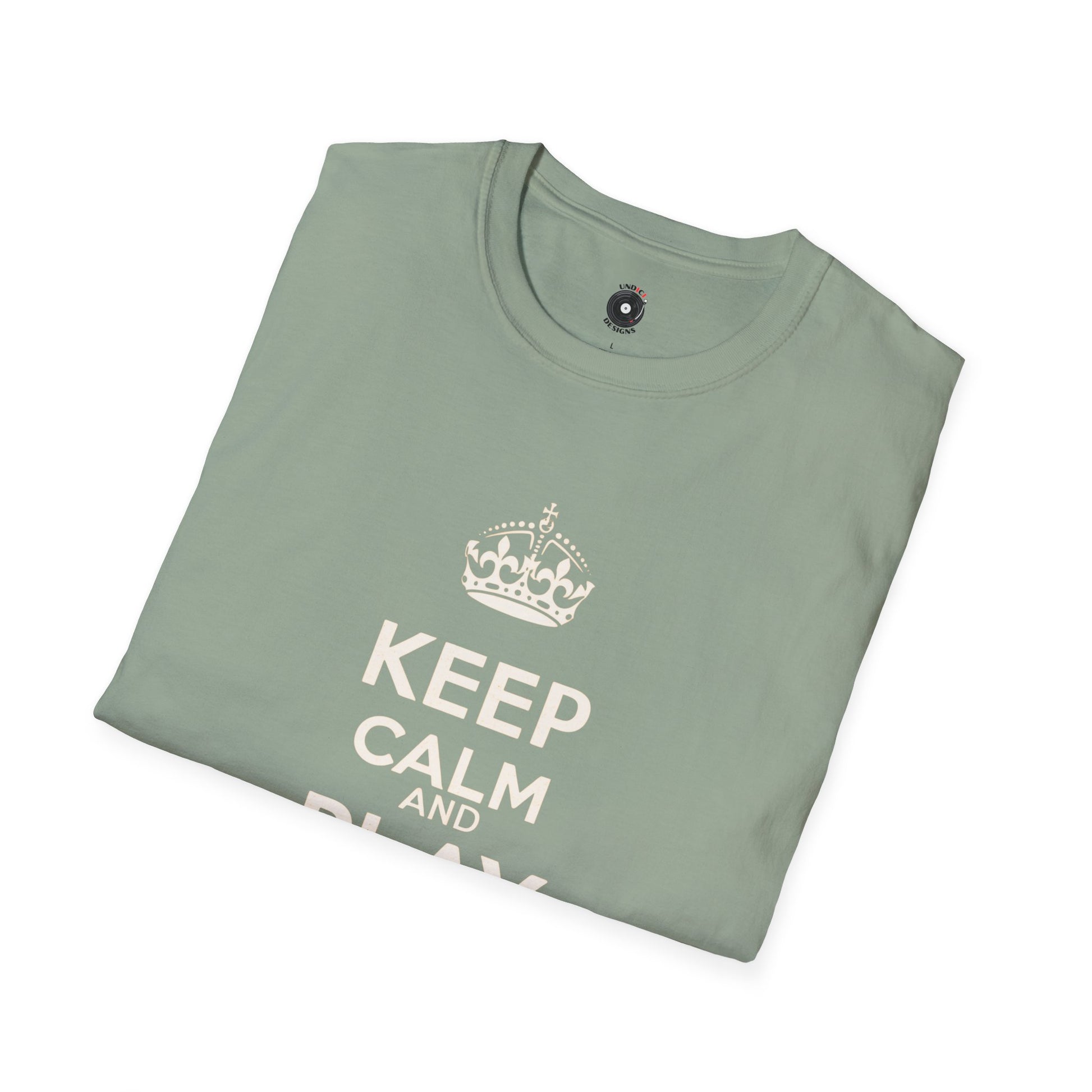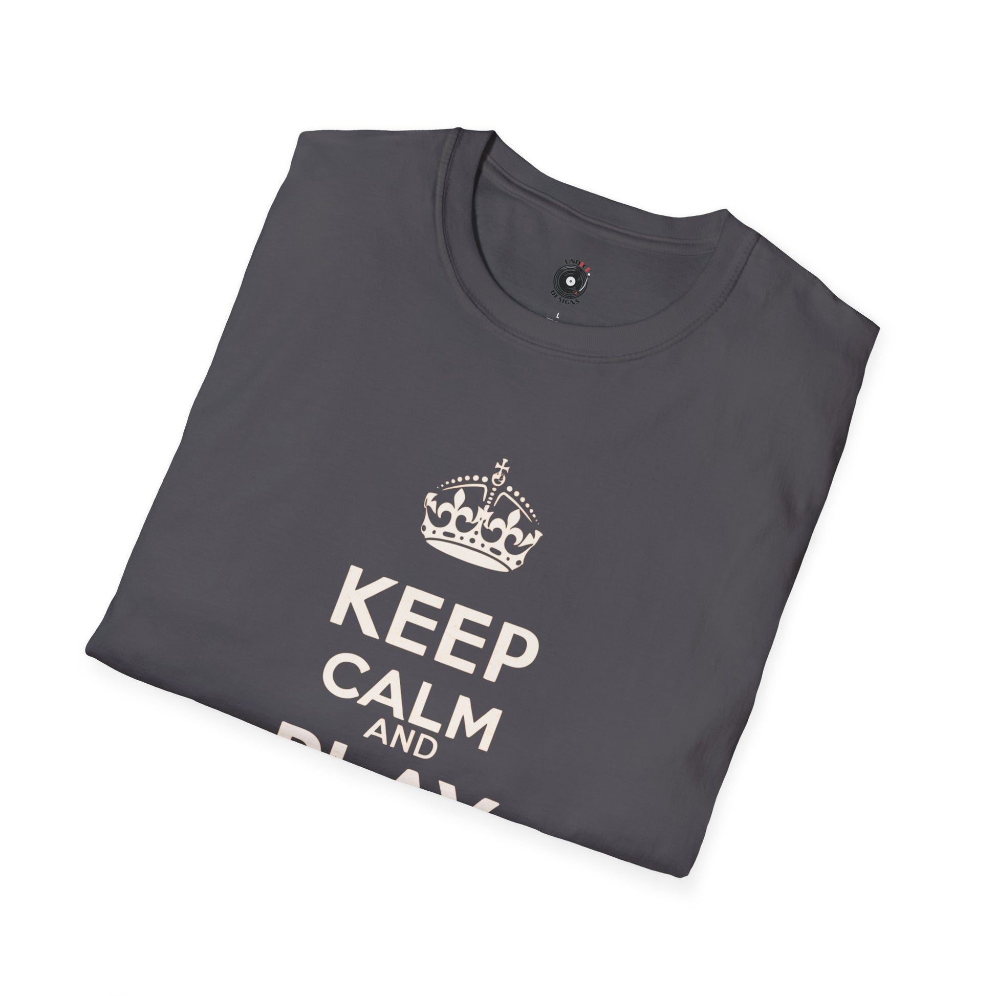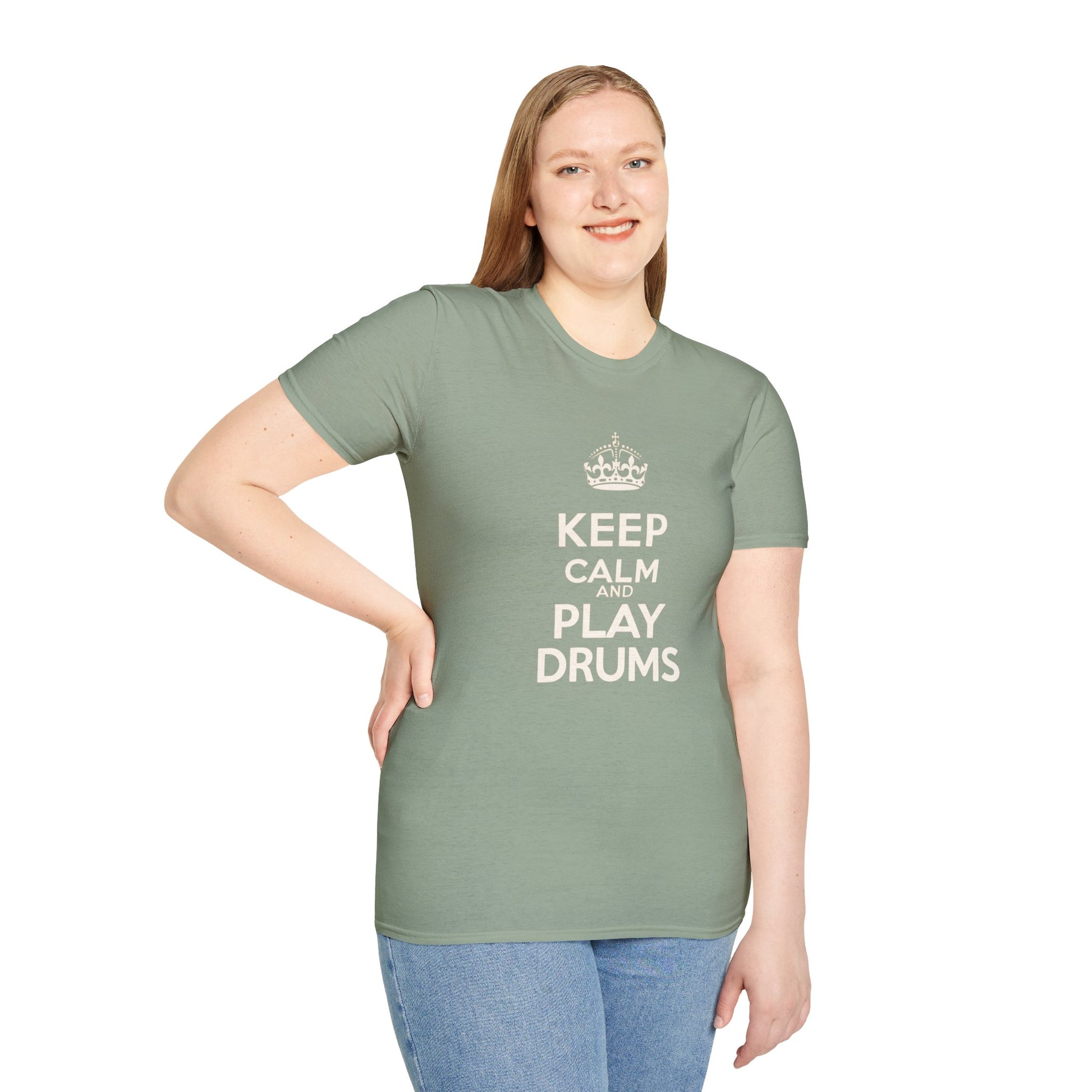 "Keep calm and play drums" text graphic tee.