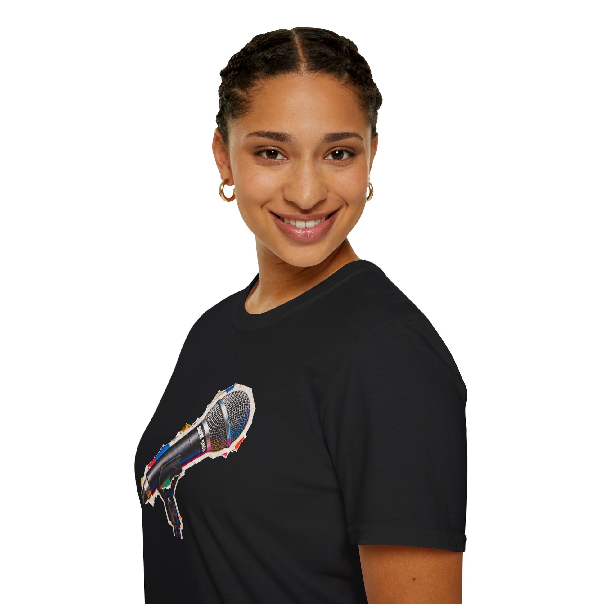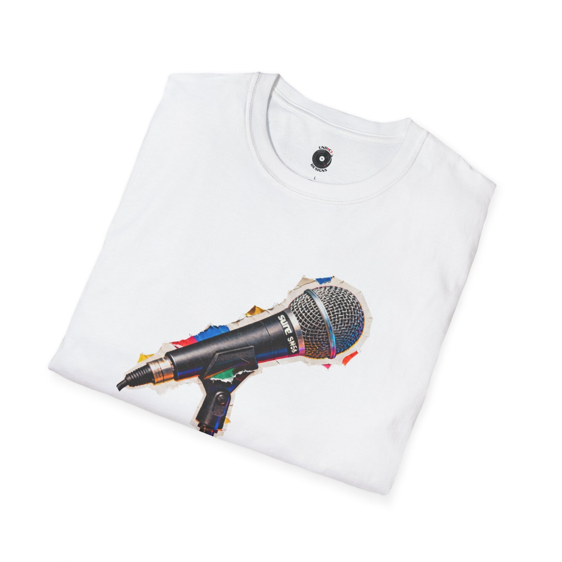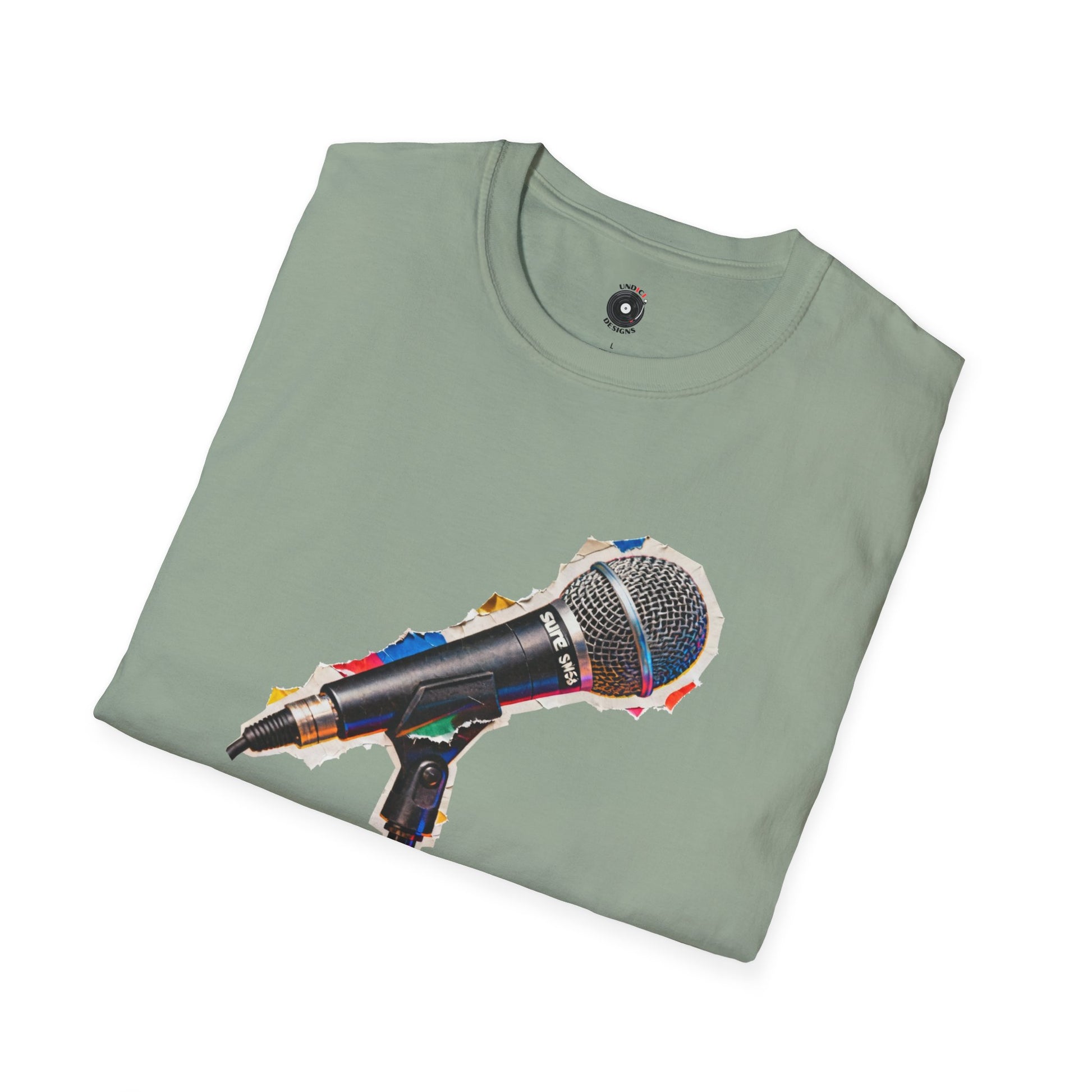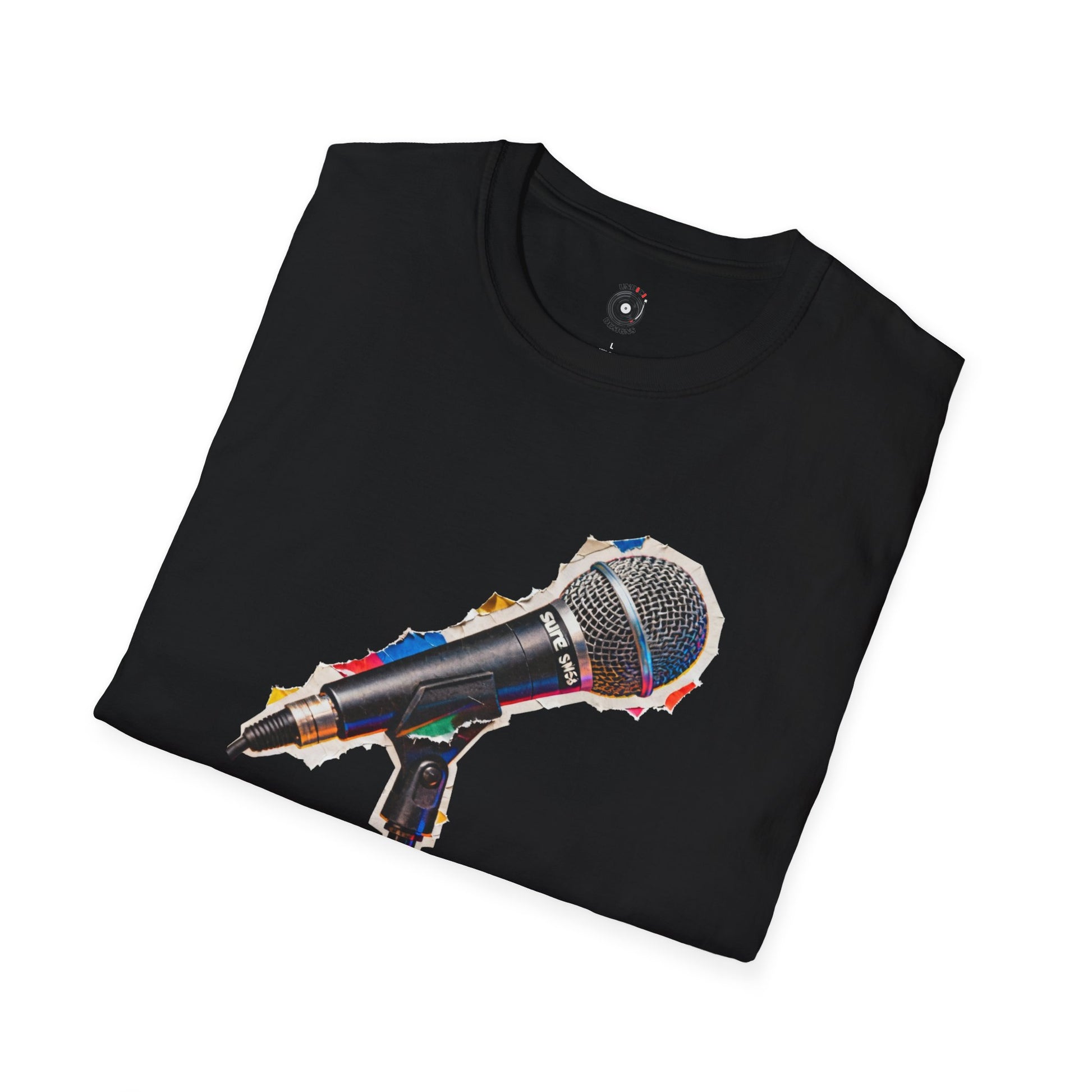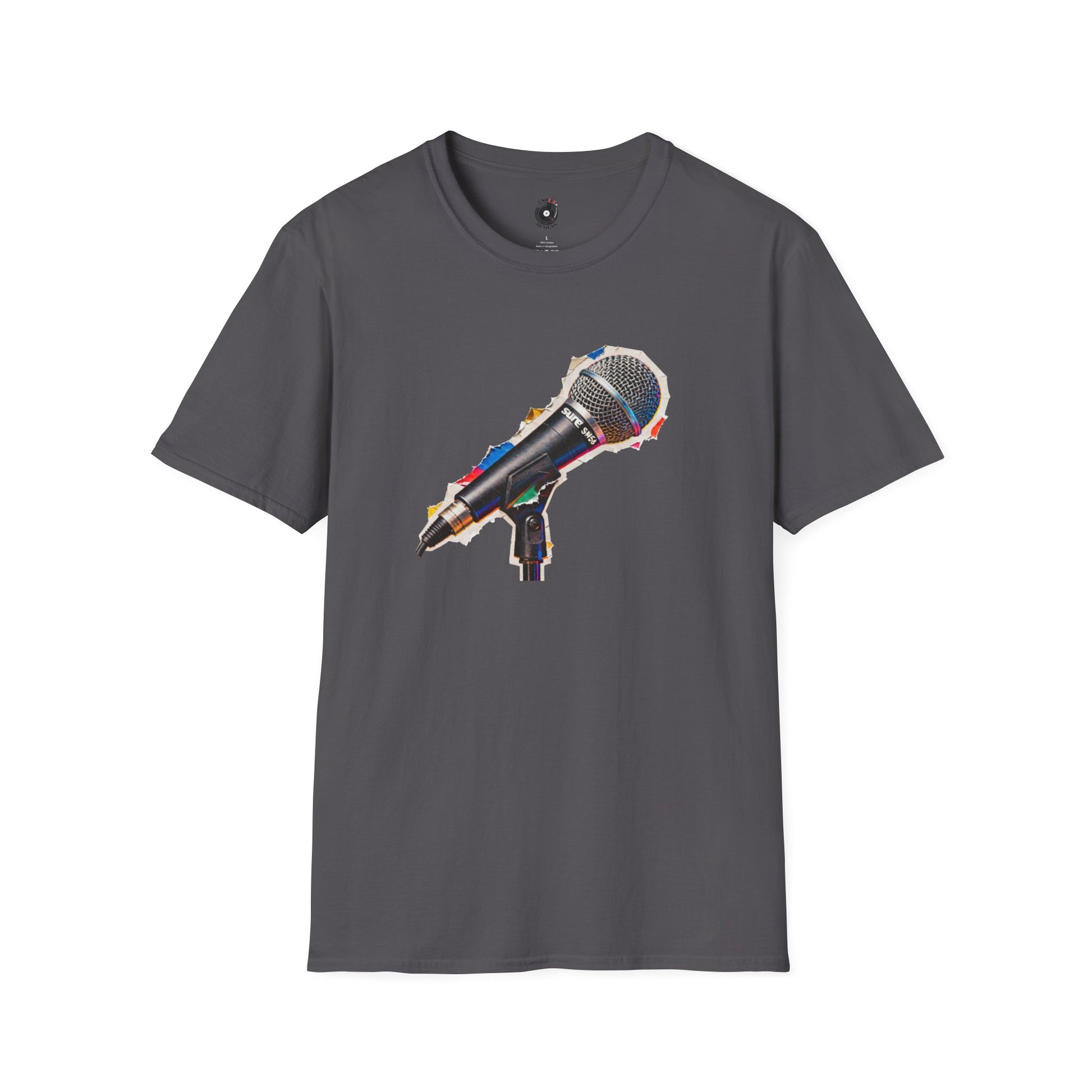 Microphone cut from a magazine graphic