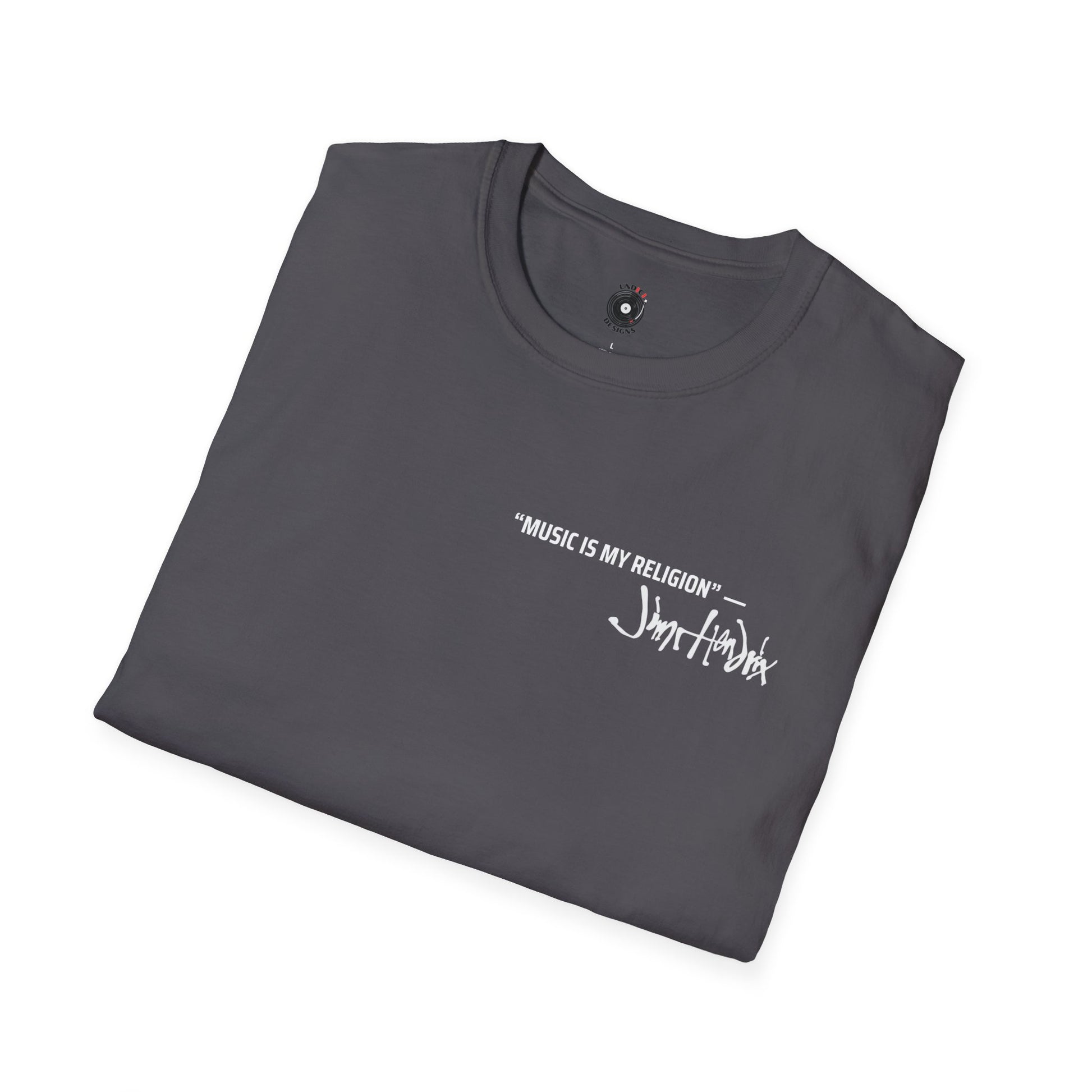 "Music is my religion" J. Hendrix. quote pocket graphic